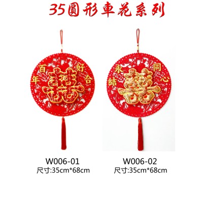 立體双桔刺绣挂饰-红色