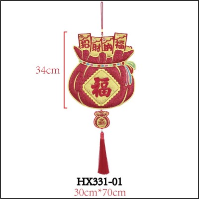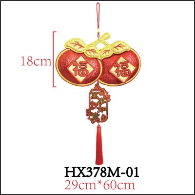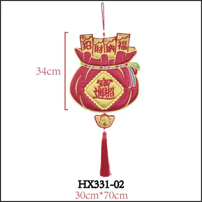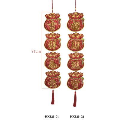 立體福袋四字对联刺绣挂饰-吉祥如意/招财进宝